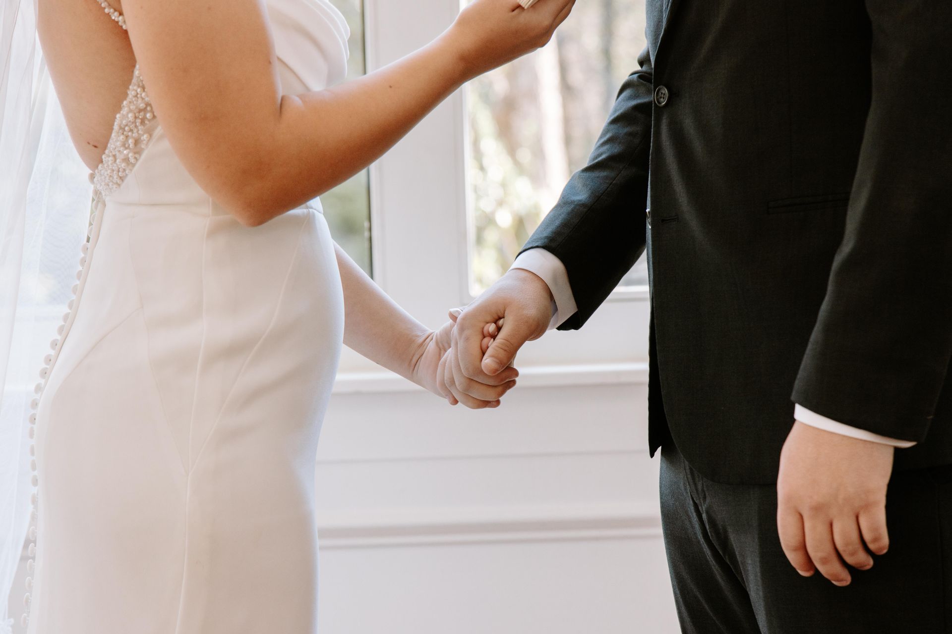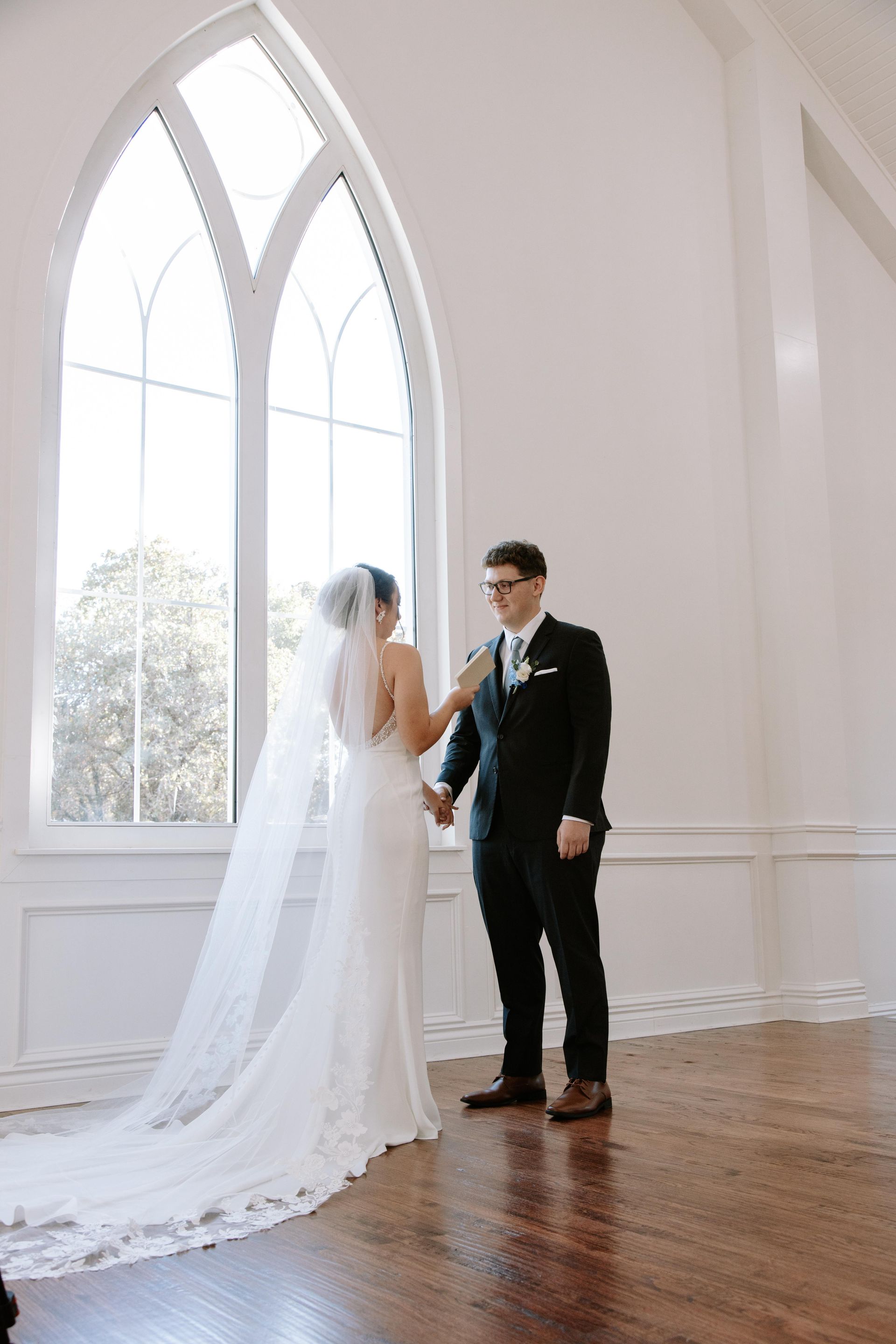 A moment I look forward to and cherish is helping the bride with her dress, veil, bouquet, and stress as we prepare for a first look/touch. I'm so honored to lend a helpful hand amidst one of the most intimate moments of the day. Blayne and Michaela chose to read private vows with each other after their first look in the chapel.